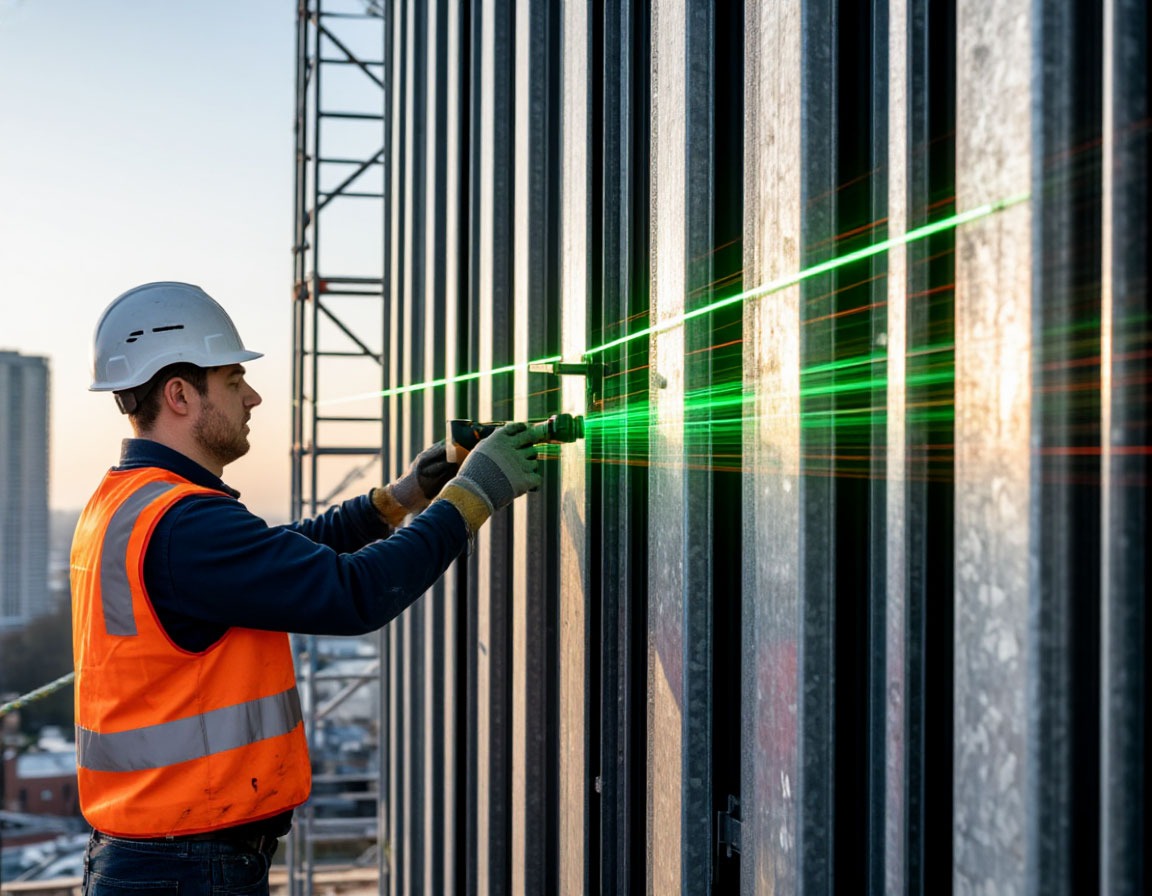 На стадии проекта задаются допускаемые отклонения: по СП по навесным вентилируемым фасадам и общим строительным нормам это, как правило, миллиметры на метр и ограничение по суммарному отклонению на этаж или высоту здания. Проектировщик обязан учесть не только исходную кривизну существующих стен, но и влияние ветровых нагрузок (по СП 20.13330) и температурных деформаций. На объекте эти цифры превращаются в конкретные процедуры: вынесение осей, закрепление реперных точек, использование лазерных нивелиров, теодолитов и, на сложных объектах, даже тахеометров. Подсистема REVENTAL монтируется не «по кирпичу», а по координатной сетке, в которую вписаны кронштейны, профили и швы облицовки, а прочностной расчёт проверяет, что все элементы работают в заданных пределах.