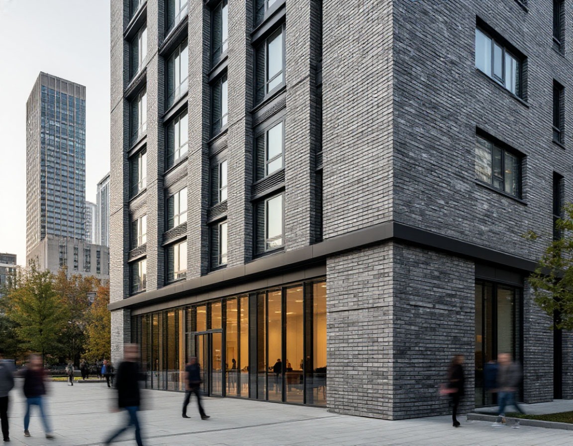 Близкие решения — клинкерная облицовка, кирпичный рисунок фасада, керамические панели под кирпич, архитектурная керамика — дают архитекторам свободу в подборе масштаба и рисунка кладки, включая баварскую раскладку и микроформаты под историческую ткань. Для «вентилируемый фасад кирпичная стена» как визуального эффекта важно сочетание тона плитки, глубины расшивки и модуля подсистемы, поскольку шаг направляющих диктует расположение вертикальных швов, влияет на резы и расход.